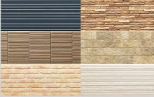 意匠性の高いサイディング外壁にお住まいの方、塗替え時はできれば一色で塗り潰したくない…そんな方におすすめ、多彩模様塗料と呼ばれるデザイン性の高い塗料もあります。多彩な塗膜のチップを配合することで、天然石を思わせる美しい風合いを与えることができます。