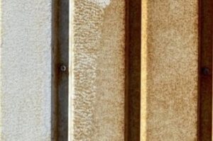 高温高圧蒸気養生された軽量気泡コンクリートのパネルです。分厚く耐火性・断熱性に優れますが、多孔質(小さな穴がたくさん開いている)なため、吸水性が非常に高いという特性があります。そのため、表面の塗膜による防水がALCの寿命を左右する生命線となります。