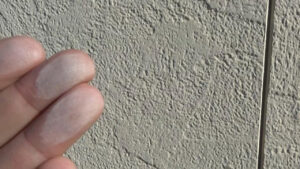 - 意味: 塗料の防水成分である合成樹脂が紫外線などで分解され、色の成分(顔料)が粉となって表面に出てきた状態です。