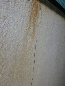 外壁のヒビや目地(コーキング)の劣化から雨水が侵入し、内部の木材や断熱材を腐らせることがあります。また、内部に浸透した雨水が、外部に出ようとし、水蒸気になり、それが原因でヒビが入り、またそこから雨水が侵入しヒビが増えるケースも多いです。