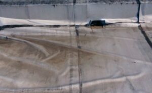 防水層の中に水分が入り込み、蒸発しようとして内側から押し上げている状態です。 -