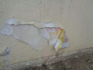 外壁の表面が水ぶくれのように膨らんでいたり、ポロポロと剥がれ落ちていたりする状態です。