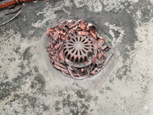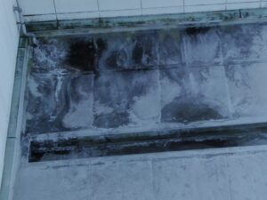 雨が止んだ後もいつまでも水が溜まっている場合、防水層の勾配(傾斜)が狂っているか、排水溝(ドレン)が詰まっている可能性があります。水たまりは防水層の劣化を急激に早めます。