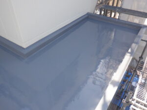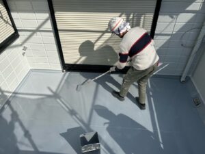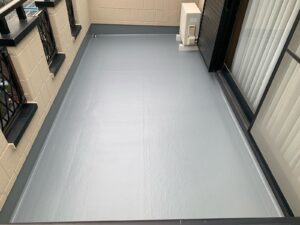 メリット: 継ぎ目のない美しい仕上がりになる。複雑な形状のベランダにも対応可能。安価でメンテナンス(重ね塗り)がしやすい。