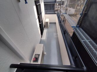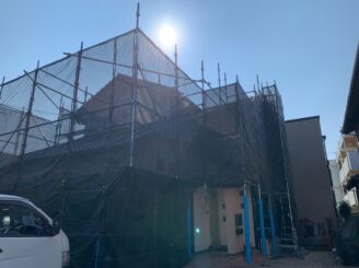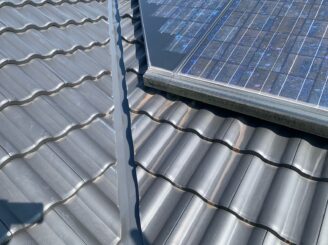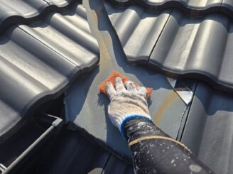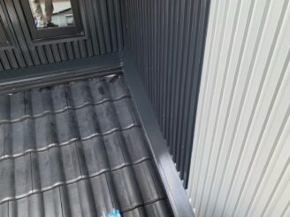 屋根は、陶器瓦の為塗装出来ませんが、屋根谷樋はサビやすい為塗装します。
