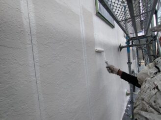 塗り重ね乾燥時間を守り、上塗りも行い、外壁の完成です。