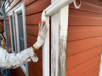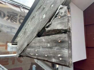 外壁や破風、ケーシング等の付帯部分も雨水の影響でかなり劣化が見られた状態でした。