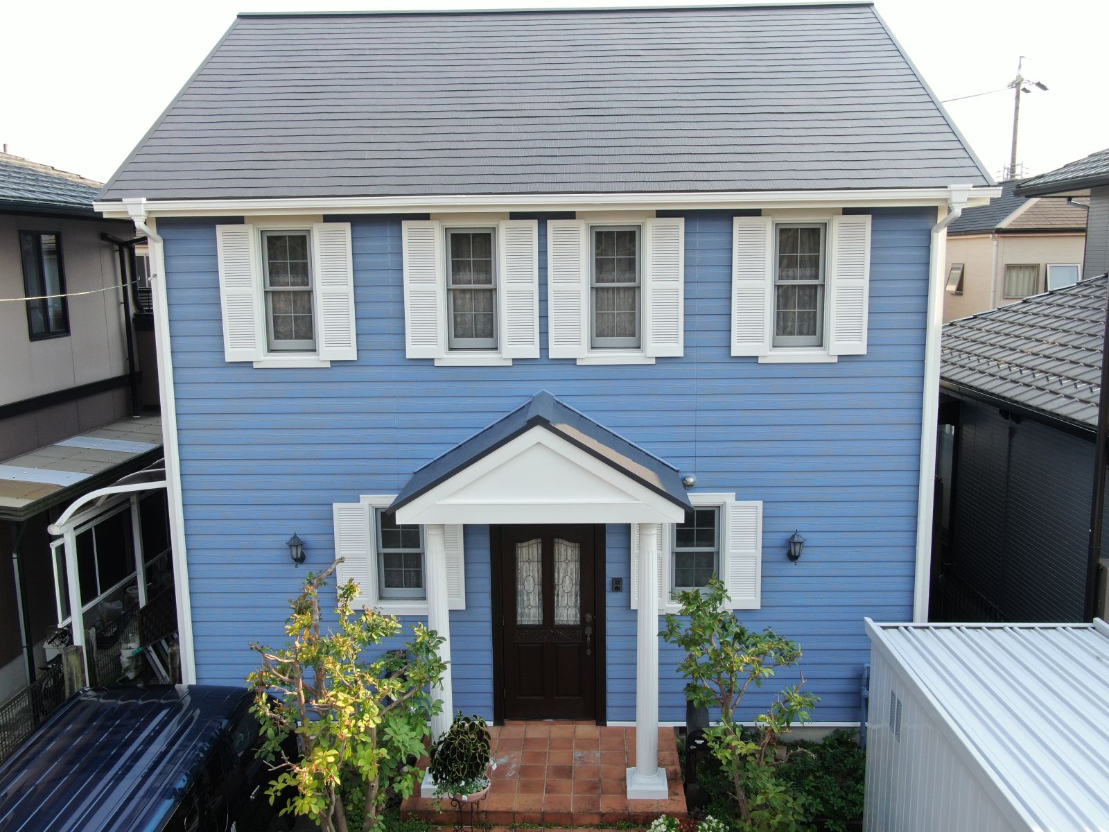 赤から青に塗り替えしますが、下塗りをしっかりするので赤みが出ることはありません。
