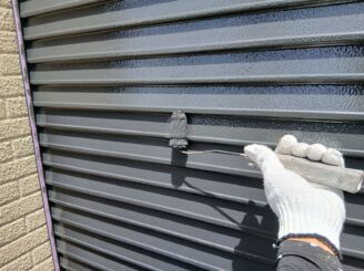 戸袋はチョーキング現象が起きておりました。このまま放置すると、サビが発生してくる為、塗装します。