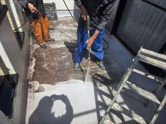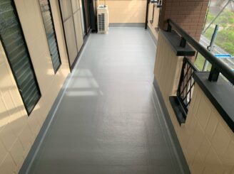 下地調整、脱脂、下塗り、上塗りを行い、新築時のような防水層の完成です。