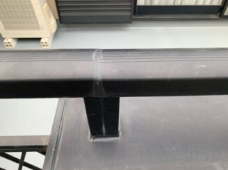 屋根谷樋は、下地調整、錆止め、上塗りを行いました。