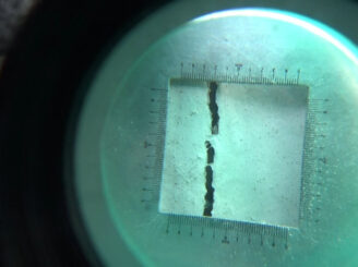 拡大するとひびが入っており、可塑剤が抜けシーリングの役割を果たしていない状態です。