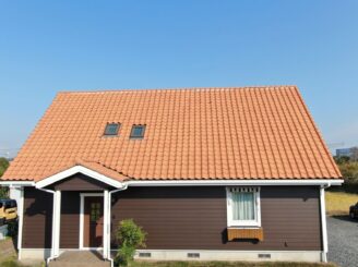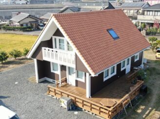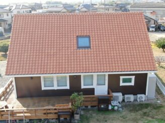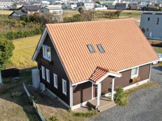 外壁色も、屋根の明るい茶色に合う落ち着いた色味で和洋問わず、とても相性の良い組み合わせです。