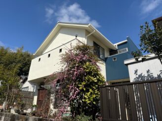| 使用塗料 | シリコンREVO1000-IR・マックスシールドネオSi-JY 【施工色:ホワイトリリィ9003・マウンテンブルー8108】 |