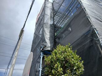 【施工後】下塗り1回目→下塗り2回目→タスペーサー設置(瓦が重ならないように挿入する部材)→中塗り→上塗り完了