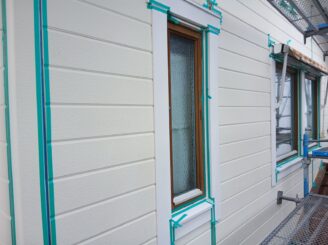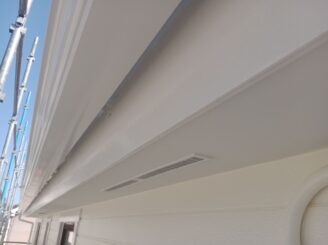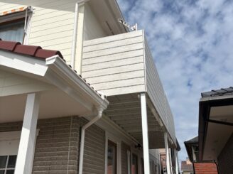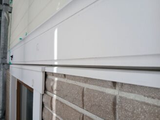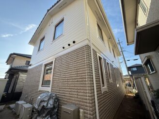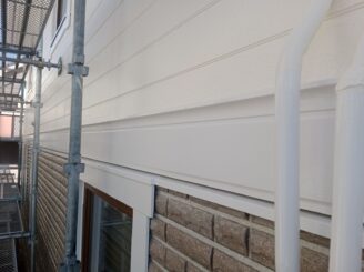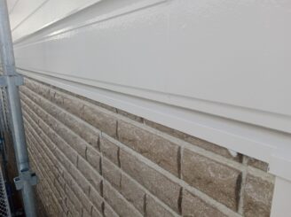 外壁には、汚れに強い「超低汚染プラチナリファイン2000Si-IR」のホワイトリリィを採用し、デザインサイディング部は「スーパーSDクリヤーF」で新築時の意匠性を美しく保護しています。