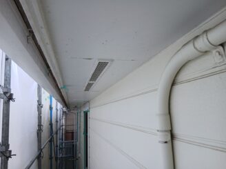 外壁も同じく撥水効果はなく、チョーキングをはじめ、ひび割れや黒カビが多く見られました。