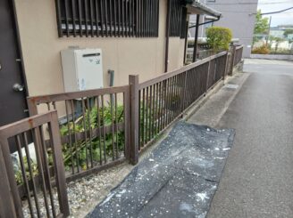 【施工後】下地処理→錆止め→笠木取付→中塗り→上塗り